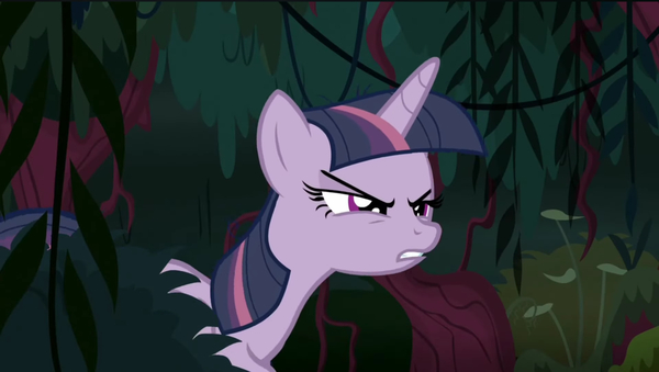 Отдельно хочется отметить, как лес также помогает показать героев и их «злых» двойников. В первой сцене героиня справа находится на открытой, светлой стороне, в то время как самозванка слева уже находится в жуткой части леса. Точно также во второй сцене два настоящих героя находятся на единственном светлом участке мрачнеющего леса, а «подставная» пони появляется из темных кустов на заднем плане. Такое разделение в очередной раз визуально подчеркивает происхождение и природу персонажей.