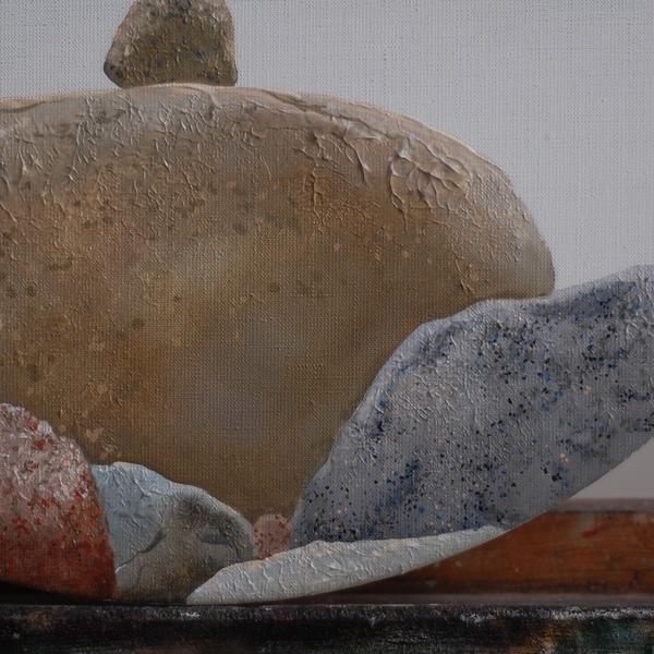 «После грозы», «Камни», холст/масло/текстурная паста/цветные карандаши, 60 см, 2025