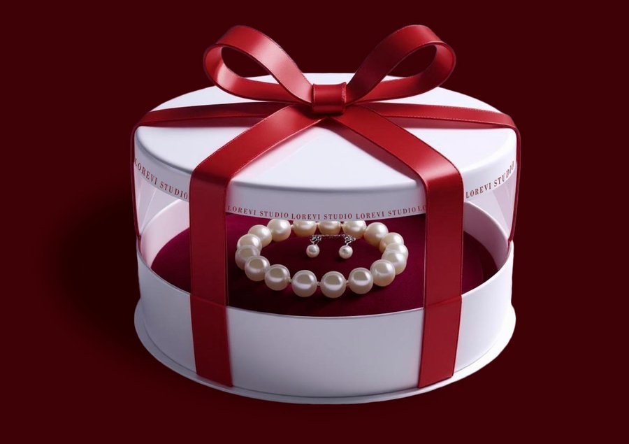 Prompt: Edible jewelry made from candies, chocolate, and sugar art, beautifully arranged inside elegant gift boxes with only a small logo called «LOREVI» on the lid. Close-up, detailed, realistic textures, soft natural lighting, showcasing delicate and colorful designs. Feminine, cozy, luxurious aesthetic. Color palette: D99AA5, BF6079, 402813, 8C8584, D9D9D9. Minimalist background, high-quality presentation, soft shadows, focus on craftsmanship and elegance. Placed in glass jars, as sweets are. There should be necklaces of these sweets in the jars