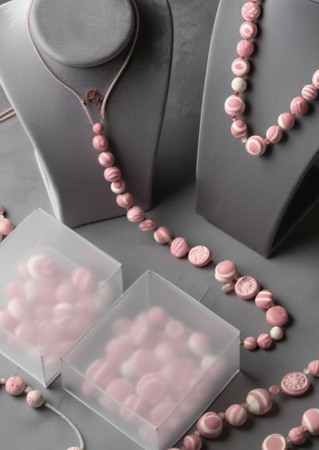Для обложки была использована нейросеть REVE и промпт: Create a beautiful and delicious cover that will be clickbait. It should be in the style of the jewelry studio. Color palette: D99AA5, BF6079, 8C8584, D9D9D9. It should also depict beautiful candy necklaces; you can also display them beautifully in transparent packaging.