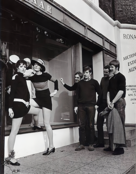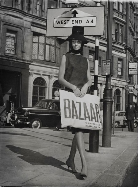 Одним из первых знаковых бутиков стал «Bazaar», открытый Мэри Квант на Кингс-Роуд в 1955 году. Его название ассоциировалось с экзотическим рынком, а ассортимент, включавший мини-юбки, яркие ткани и геометрические узоры, подчёркивал стремление к свободе самовыражения и отвергал традиционные нормы моды. Квант черпала вдохновение в городской жизни и идее меритократии, создавая стиль «девушки из Челси» — молодёжный, дерзкий образ, который стал глобально узнаваемым во всем мире [Бруард К., 2016].