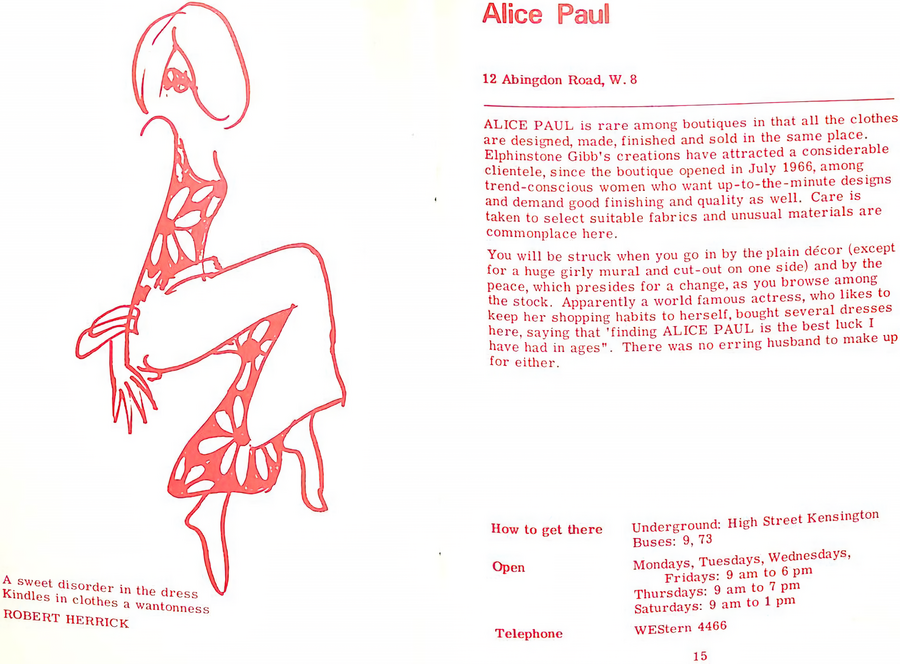 В середине XX века Лондон переживал культурный подъём, связанный с послевоенным оптимизмом и молодёжной энергией, что нашло отражение в бутик-культуре. В отличие от традиционных универмагов и парижских домов высокой моды, бутики представляли собой небольшие, независимые магазины с уникальной эстетикой и доступными ценами [Dagworthy W., 2009]. Магазины, расположенные в районах Челси, Сохо, Кенсингтон, предлагали экспериментальные и разнообразные дизайны, которые отражали дух молодежного бунта и культурной революции. Согласно путеводителю «Get Dressed» (1966), в центре города насчитывалось около 80 бутиков, что подчёркивает их масштаб [Dagworthy W., 2009].