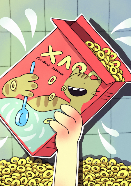 История в трёх кадрах про любимый завтрак — хлопья с молоком.