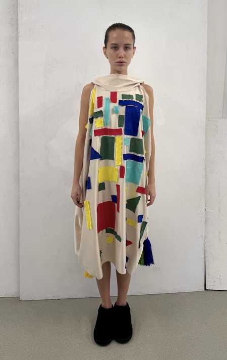 Мой проект является продолжением и третьим звеном этой цепочки неопластицизма и моды. Я решила развивать идею Мондриана о чёткой геометрии, стиле неопластицизма и идеальной простоте, взяв за основу цвета локации, марокканскую культуру, «сетку Мондриана» и простые геометрические фигуры, которые можно найти в архитектуре Виллы Мажорель.