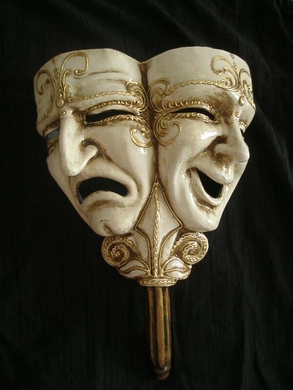 Если в первобытных ритуалах маска была средством общения с иным, то в античности маска впервые стала объектом коллективного наблюдения. Здесь маска наконец отделяется от сакрального и превращается в то, что мы сегодня называем спектаклем или перфомансом.