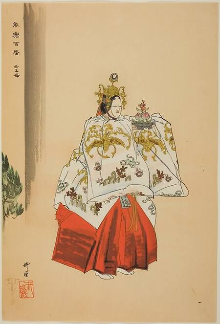 Гравюра с изображением театра Но 1897 года, выполнена Когё Цукиока
