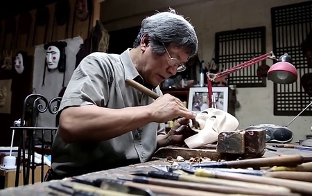 Фотография мастера из видео про культуру корейских масок; набор масок Хахве