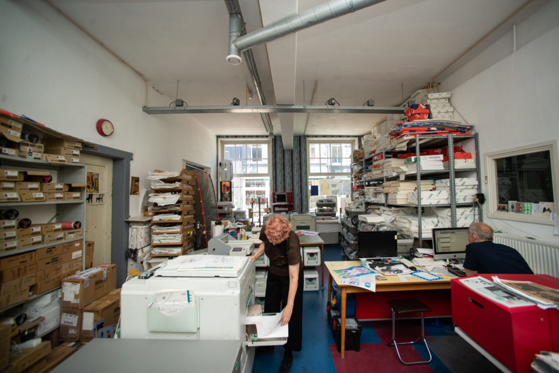 Если говорить о печатных практиках, всё чаще сегодня обращаются к ризографии. Она основана на механическом процессе, который оставляет «ошибки» — смещения слоев, несовпадения линий, градиенты разной плотности. Эти механические несовершенства становятся художественным языком, противопоставленным цифровой точности.