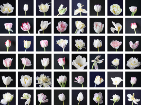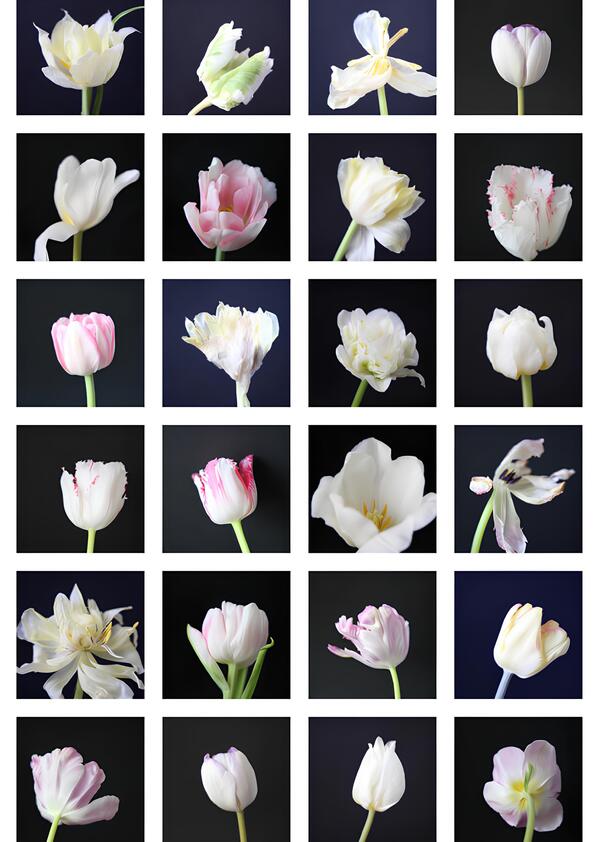В проекте «Mosaic Virus» Анна Ридлер объединяет искусственный интеллект с живой природной средой, превращая циклы роста тюльпанов в визуализацию данных. Художница использует реальную коллекцию тюльпанов, вручную снимает каждый цветок, создаёт собственный датасет и обучает модель, генерирующую изображения, основанные на исторических данных о «тюльпанной мании». Так, физический объект (живой цветок) становится материальным носителем, включённым в цифровой процесс.