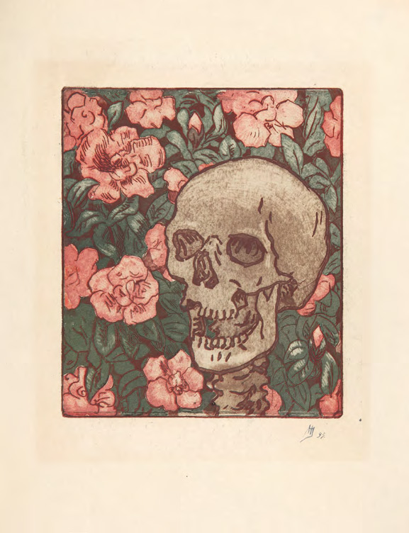 М. В. Якунчикова Страх. 1890-e. [1893–1895]/М.В. Якунчикова Смерть и цветы [Череп на темно-зеленом фоне с розовыми и белыми цветами] [1893–1895]
