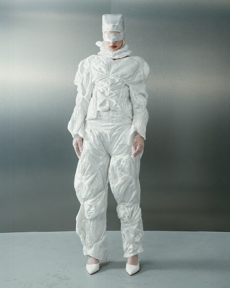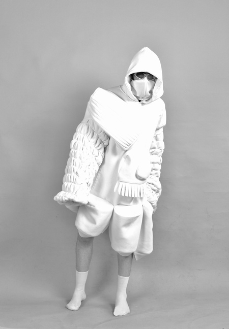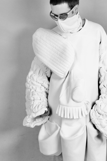 Свитшот, работа с формообразованием и «буквальное» воплощение механизма музыкальной шкатулки в изделии.