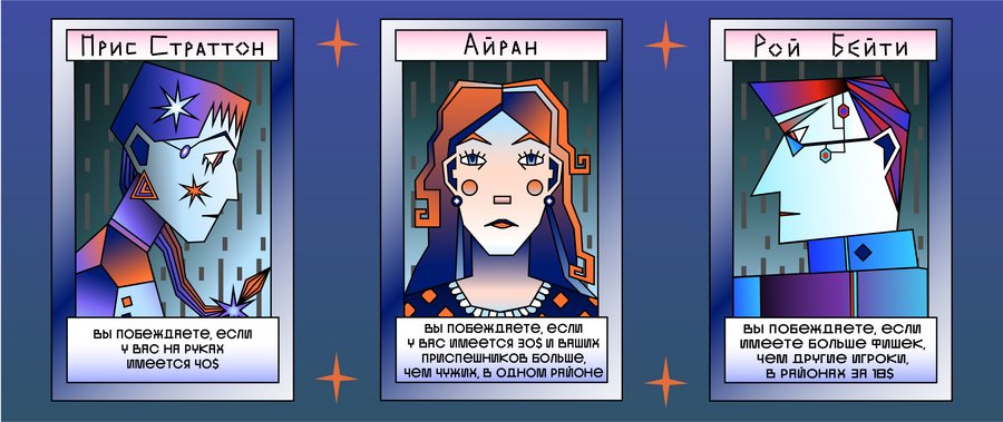 Случайным образом вытяните карту персонажа. Вы работаете тайно, поэтому свою личность нельзя раскрывать до победы!