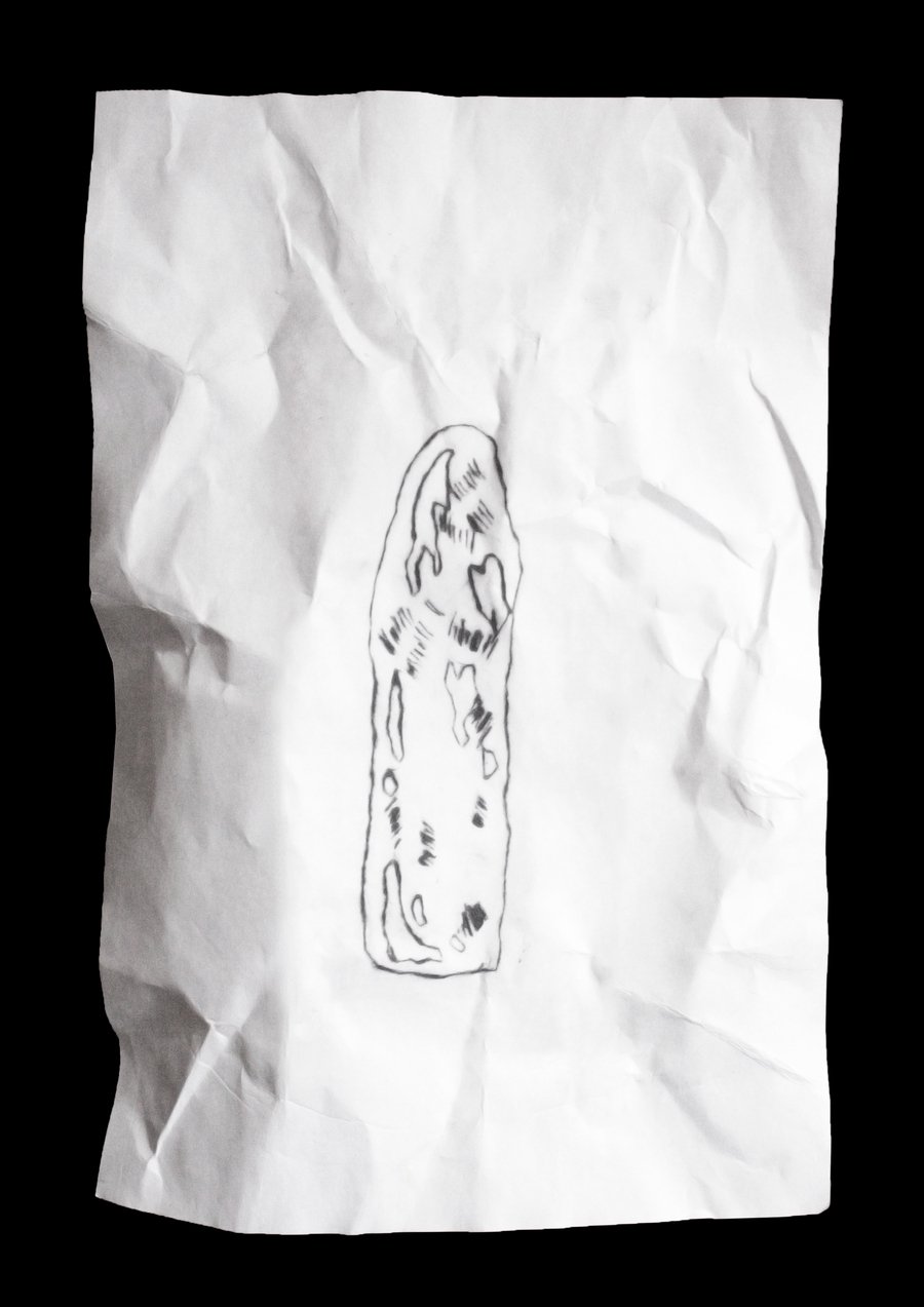 В то же время этот жест намеренно снижает значимость самого изображения. Работа создаёт ощущение, будто в этих «камнях» нет ничего примечательного. Я стремлюсь сблизить этот опыт с реальной встречей с древним менгиром, который со стороны кажется обычным валуном, лишённым явных признаков рукотворного происхождения. Грань между природным объектом и памятником первобытной архитектуры стёрлась. Для современного человека простой камень уже не говорит сам за себя. Моя работа исследует эту зыбкую грань — контраст между колоссальным культурно-историческим значением менгиров и их внешней неотличимостью от природных объектов.