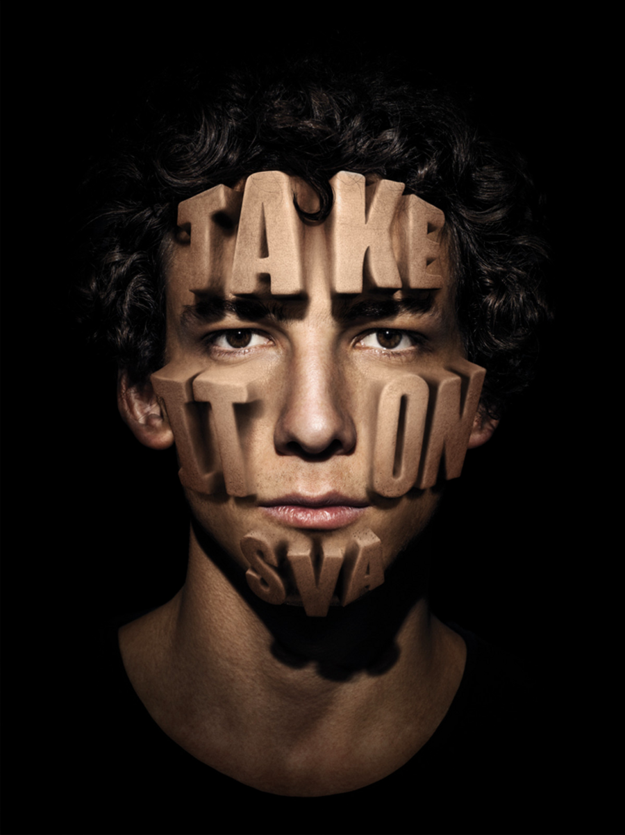 Плакаты «Take It On» для Школы визуальных искусств (SVA) в Нью-Йорке — это серия работ, задача которых — выразить идею принятия вызовов и ответственности.