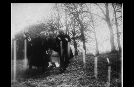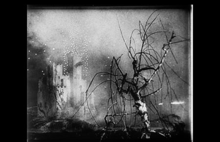 Контрастный же свет в «Падении дома Ашеров» используется Эпштейном в качестве орудия мистического настроения оригинального произведения Аллана По. Здесь он не просто освещает, а словно разъедает пространство изнутри, высвечивает мертвенные лица, проникает сквозь прозрачные ткани и отражается от поверхностей, создавая ощущение потустороннего присутствия. Мерцающий свет, отражения на воде и стекле, бликующие предметы становятся метафорой зыбкости границы между жизнью и смертью главного героя и его предстоящей судьбы.