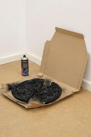 Художник работает с пластичными материалами, нанося их на плоскость, имитируя мазки мастихина по холсту. Затем работа покрывается лаком, что также слишком знакомо для живописных практик.