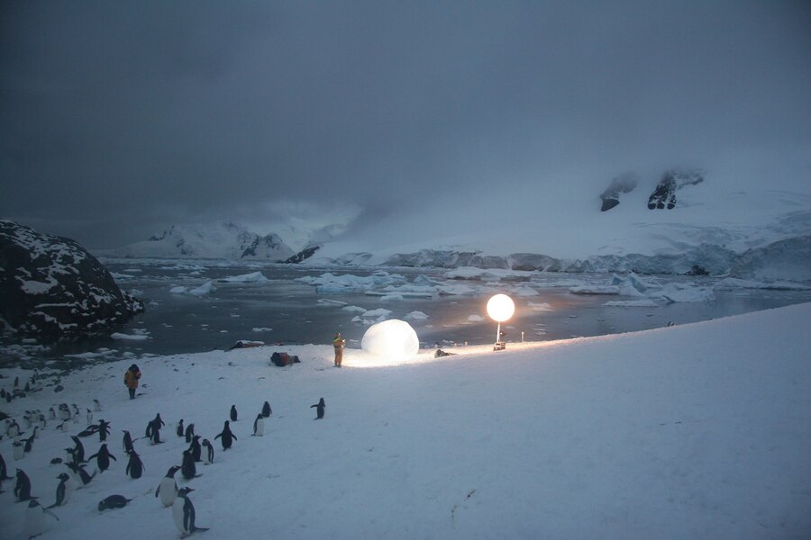 В совсем другом направлении работает Agnes Meyer-Brandis. В ряде художественных проектов эстетика строится на сочетании документальной наблюдательности и вымысла, создавая особое восприятие межвидовой среды. В Moon Goose Colony Meyer-Brandis формирует визуальный образ через отношения, возникающие между художницей и группой гусей, воспитанных в условиях «лунного» аналога. Пространство инсталляции, включающее ландшафт, свет и движение птиц, превращается в кинематографическую среду, где реальность и фантазия переплетаются. Эстетика возникает из самой повседневности животных — их маршрутов, жестов и реакции на созданные для них условия, превращающих эксперимент в живую, изменчивую форму.