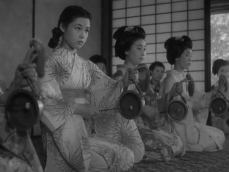 Фильм «Гейша», снятый Мидзогути, повествует о девушке Эйко, проходящей долгий и трудный путь становления. Взятая под крыло подругой ее покойной матери, Эйко решает во что бы то ни стало обучиться навыкам гейши и усердно осваивает нелегкое ремесло вместе с другими девушками. Эпизоды их занятий полны деталей, а композиции четки и выверены, как и манеры настоящей гейши — в сценах с игрой на музыкальных инструментах и искусством чайной церемонии ученицы усажены в строгом геометричном порядке, а их кимоно гармонично сочетаются друг с другом.