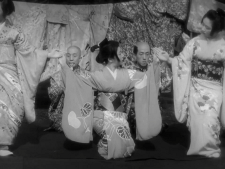 Несмотря на очевидный мотив такой съемки — попытку избежать явного элемента жестокости, нехарактерного для раннего японского кино — в движении камеры зритель может увидеть и некоторую поэтичность. Лезвие катаны нежно сверкает на солнце, холодное и равнодушное к трагедии этого маленького человека, погибшего во имя любви.