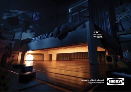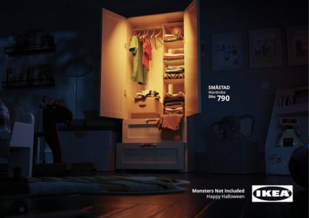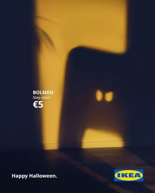 В 2024 году у Икеи была другая хэллоуинская кампания. В ней мебель для детей отбрасывала «страшную тень».