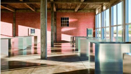 В Марфа последовательность достигает абсолютного объема. Сто одинаковых элементов преобразуют строительное пространство в творение искусства. Серийный ряд здесь — не лишь ряд предметов, но средство для оценки и переработки пространства. Темп ящиков и промежутков между ними формирует сильное энергетическое поле, в котором находит себя наблюдатель. Искусство теперь не размещается в аспекте; оно превращается самим пространством, его характеристикой.
