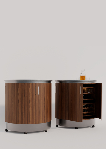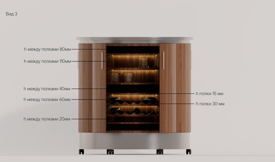 Это бар, который создаёт настроение. Тёплое дерево и холодный металл, это контраст, рождающий баланс между внутренним и внешним. Он не просто хранит напитки, он хранит момент.