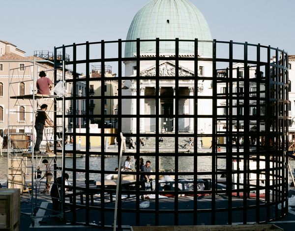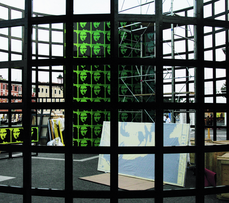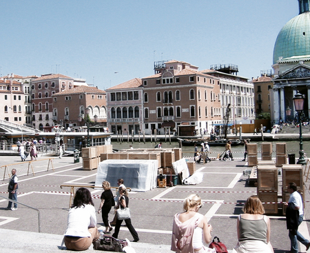 Installation of the Mona Lisa Time Tower. Piazza Santa Lucia, Venice. 51st International Art Exhibition, 2005