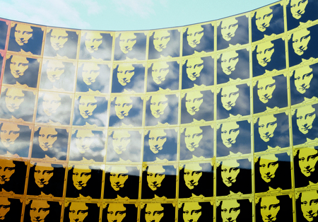 Installation Mona Lisa Goes Venice. Silkscreen on metal, 300×300×5 cm.