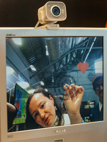 Буквы существуют в беспорядке, пока зритель не создаст точку фокусировки, соединив большой и указательный палец. Вокруг нее символы начинают собираться в слова. Этот жест становится метафорой концентрации: как только внимание рассеивается, текст вновь распадается.