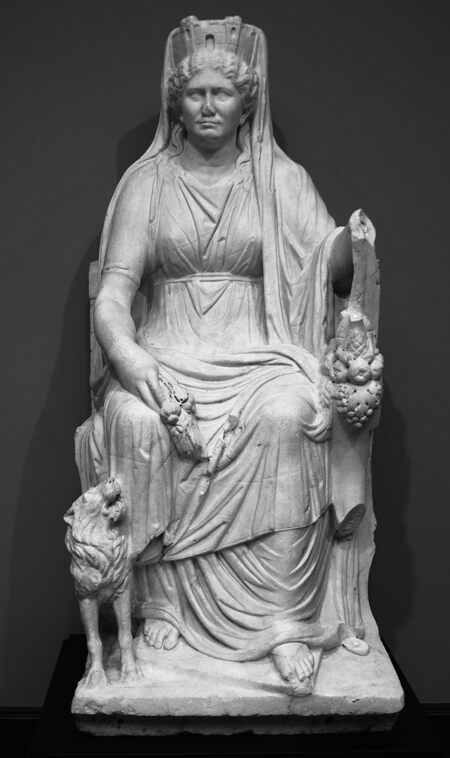 Здесь ее образ уже намного больше связан с римскими понятиями о добродетели, присущей «почтенной матери и жене». Фигура статна, неподвижна, все еще видны привычные символы Кибелы, но к ним добавились новые — маки и пшеница в руках.
