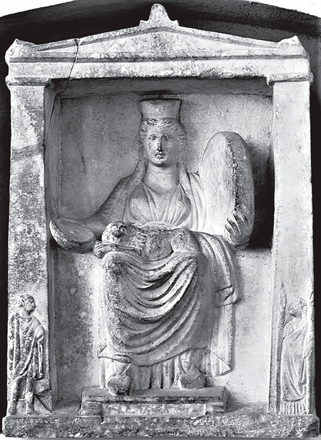Посвятительные рельефы. Кибелы, Гермеса и Гекаты из раскопок Горгиппии. Ок. сер. III в. до н. э./Кибелы, Гермеса и Гекаты из Аттики. Вт. пол. IV в. до н. э.