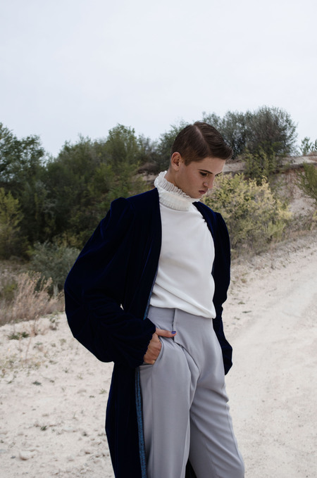В свою очередь, глубинная, темная синева моря проявляет себя через плотные, фактурные материалы, сложный крой и поглощающие свет оттенки, символизирующие те скрытые, потаенные слои эмоциональной жизни, которые человек не спешит обнажать.