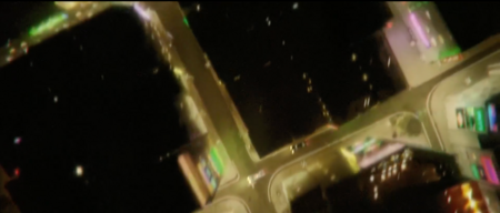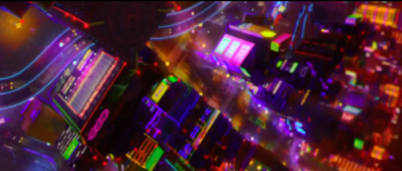 Начальные сцены погружают в искусственную неоновую палитру Токио — фиолетовые и синие отсветы клубов, зелёные свечения мониторов, красные вспышки рекламы. Синтетические цвета создают ощущение отчуждённой урбанистической реальности, в которой потерялся главный герой.