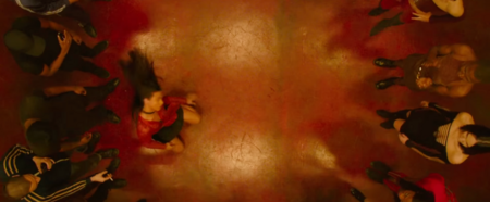 В «Экстазе» Ноэ переносит фокус с индивидуального на коллективное телесное переживание. Непрерывное движение камеры, следующей за танцорами без монтажных склеек, создает эффект тотального присутствия внутри локации. Использование перевернутых ракурсов и видов сверху дестабилизирует привычное восприятие, визуализируя нарастающий психоз и потерю ориентации. Камера здесь становится орудием коллективного «бэд-трипа», где индивидуальное сознание растворяется в групповой истерии.