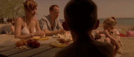 По мере развития сюжета (в обратном порядке) цветовая палитра постепенно смещается к мягким, тёплым тонам. Фильм завершается сценами в золотистом свете, передающими идиллию и невинность, которые были разрушены. Этот хроматический переход от тьмы к свету создаёт мощный эмоциональный контраст, подчёркивая необратимость утраты и трагизм произошедшего.