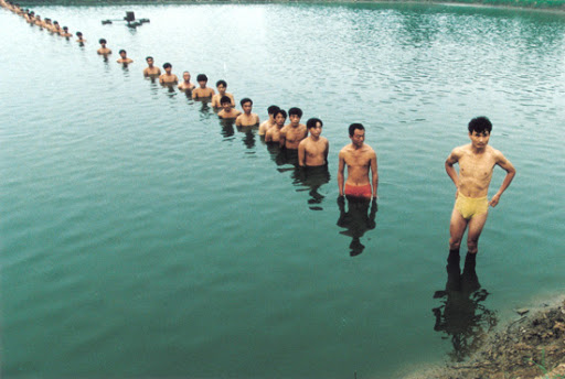 Чжан Хуан, Поднять уровень воды в рыбном пруду, 1997. Хромогенная печать на бумаге, прикрепленной к алюминию.