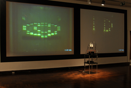 В проекте «Latent Figure Protocol» изображение формируется не на холсте, а внутри лабораторного геля, где ДНК-образцы, разделённые электрофорезом, складываются в визуальный узор. Под ультрафиолетовым светом эти полосы проявляются как фигура, демонстрируя, что биологические данные могут быть интерпретированы так же конструктивно, как и художественные элементы. Работа подрывает представление о ДНК как о «объективном» носителе истины, показывая её зависимость от методов визуализации и контекста. Это произведение превращает научную процедуру в критическое высказывание о доверии к биологическим изображениям.