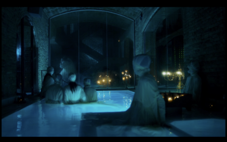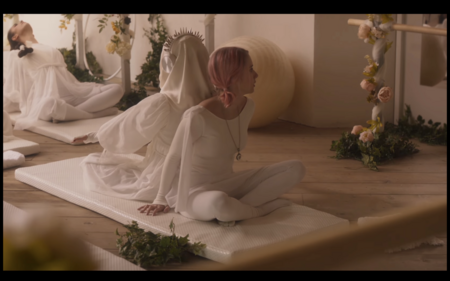 Сцена, в которой девушки тренируются, демонстрирует слаженность движений девушек. Освещение холодное, тусклое, навевает мысли о больничном помещении. Девушки перемещаются гладко, словно марионетки.