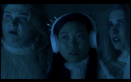 При побеге Умы в кадре создается ощущение будто она сама держит камеру и бежит с ней. Это так же показывает ее эмоциональность и живость, оставшуюся с реального мира. На девушках камера становится более плавной, статичной, показывая этим стремление к идеальному кадру. Девушки, одетые одинаково, двигаются синхронно, что создаёт ощущение неестественной гармонии и правильности, в отличии от Умы, которая