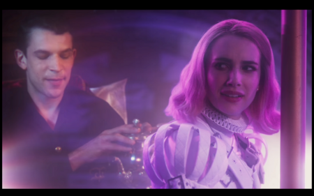 Изменение освещения говорит о переходе от явной безупречности к сокрытой истине, сладкий розовый цвет сменяется на тени, полумрак, синие оттенки кадров. Стены из пастельных и ровных превращаются в каменные, будто пещерные, скрытые.
