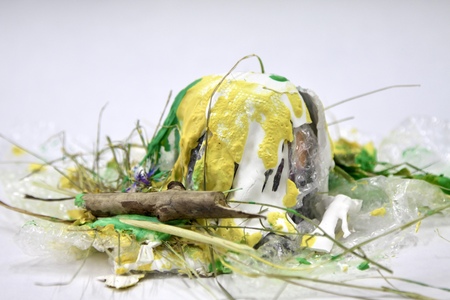 Скульптура — объединяющий элемент. Задача: создать одну большая (в виде столба) и серию небольших. Я взяла объекты и элементы визуальных образов, которые привезла из путешествия — образы с фотографий и реальные объекты — косолки, цветы и провела серию экспериментов на основе понравившихся референсов.