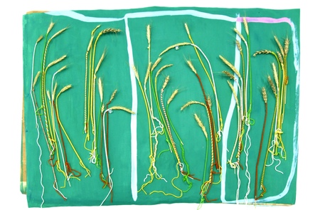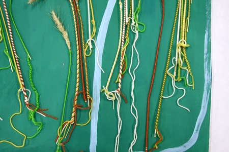Здесь я продолжаю исследовать процесс наматывания. Каждый колосок обвязан несколькими нитками. Иногда я прошу гостей, приходящих ко мне в дом, обвязывать колоски.