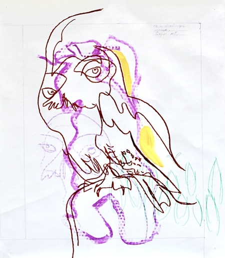 Фрагмент картины. Акрил, карандаш, маркеры на холсте. Стихи Владимира Тимина