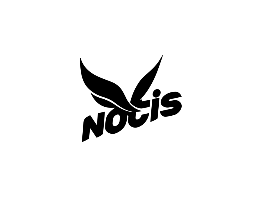 Create a sleek and modern logo for a jewelry brand called 'Noctis'. It must contain the name Noctis. The logo should feature minimalist, elegant design elements, such as subtle feathers or wings, with a metallic or silver color palette. The typography should be sharp and expressive, combining modern sans-serif or geometric fonts. The overall design should convey luxury, mystery, and strength, suitable for a high-end jewelry brand. White background.