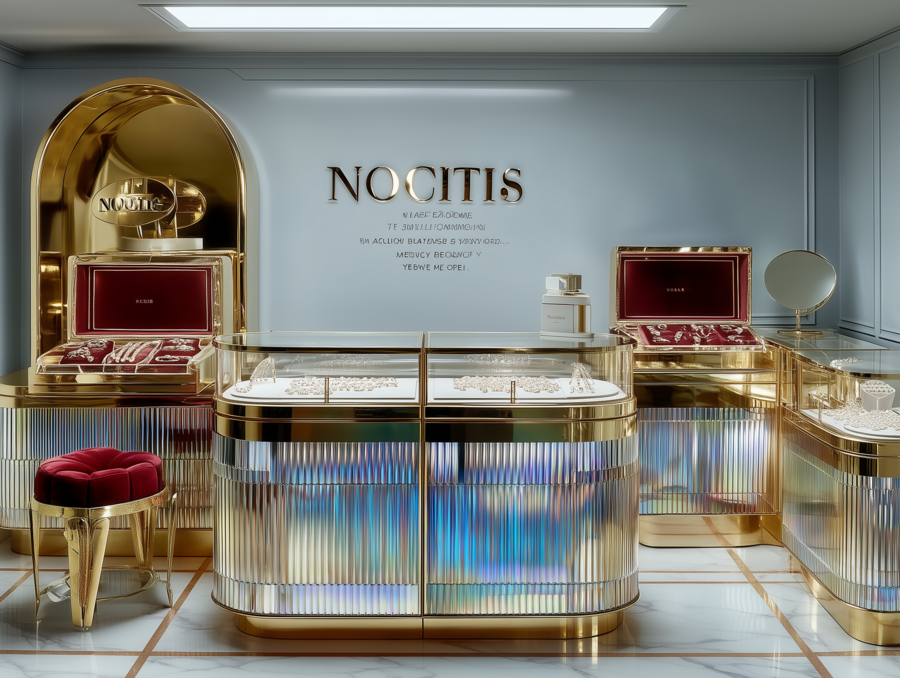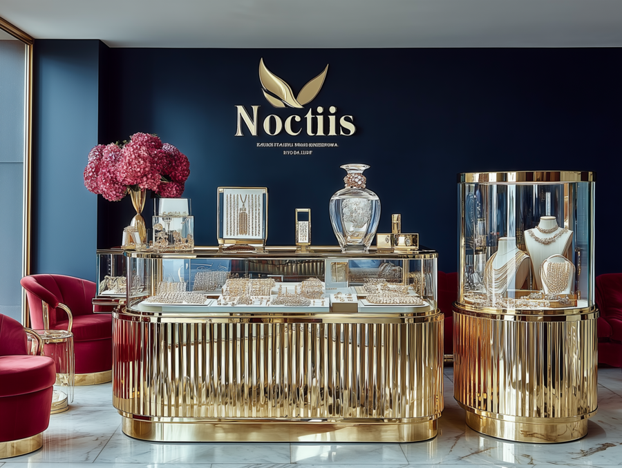 showroom-a space for the sale of jewelry for the brand «Notis», the main colors are gold and blue