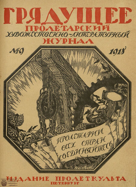 «Грядущее» — это первый журнал Пролеткульта, выходивший в 1918–1919 годах. Ранние обложки имели лишь типографическую составляющую. На обложку была помещена вся основная информация, в том числе содержание и информация о редакции. Тем не менее, несмотря на лаконичность, здесь присутствует диапазон шрифтов и начертаний, и название является основным визуальным якорем. Такой подход отражает серьёзность содержания выпусков первого пролеткультовского журнала, в котором публиковались статьи по вопросам пролетарской культуры.