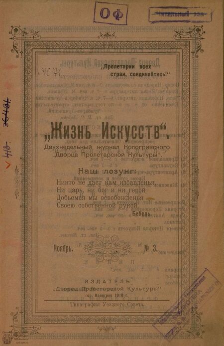 Журнал «Жизнь искусств». Выпуск № 3. 1918 г.