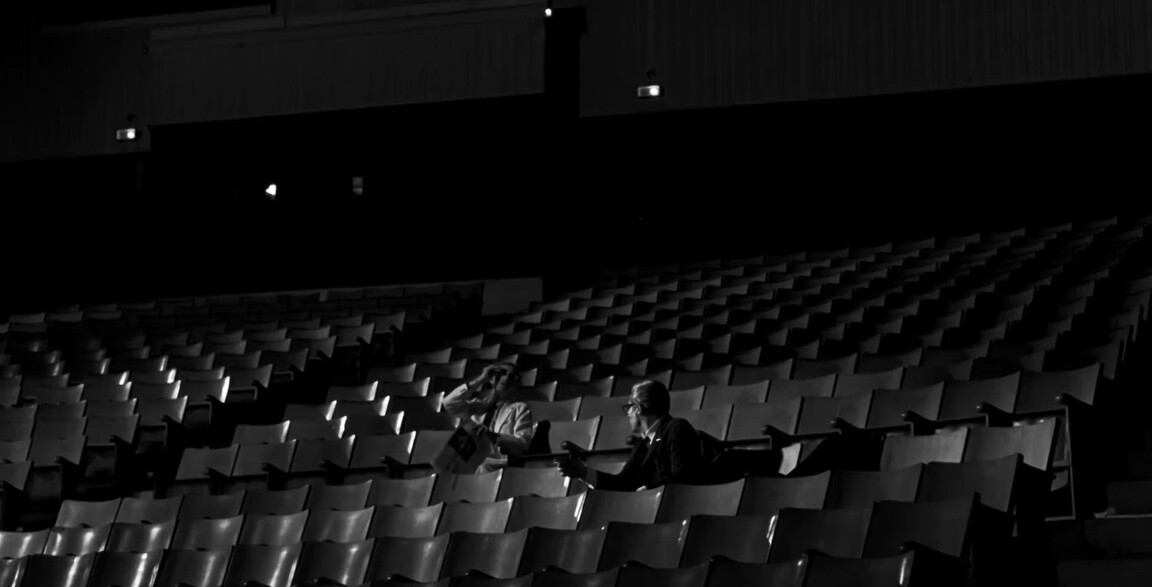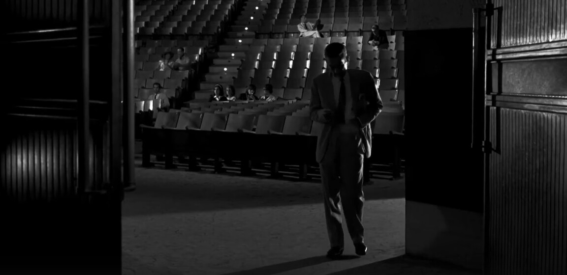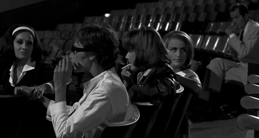 Кино про кино без сцен в кинотеатре не кино про кино. Обычная сцена, кадры из фильма, где герои как в ни в чем не бывало сидят в кинотеатре и смотрят фильм. Повседневная реалистичная сцена, герои здесь похожи на нас самих, они — зрители.