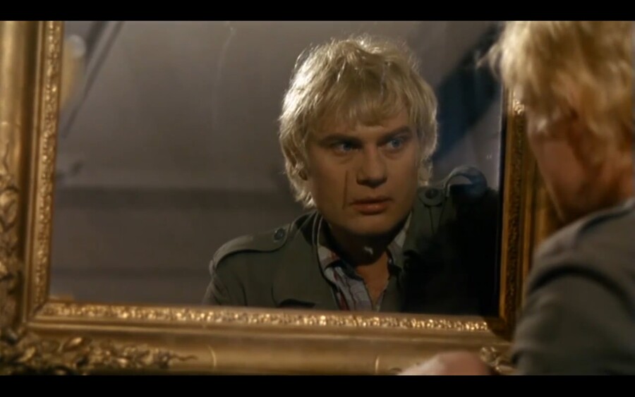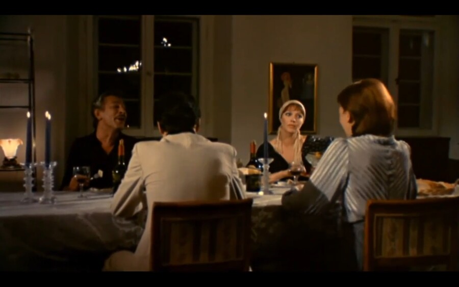 Подобно Феллини, Бергман также сажает своего героя будто перед «экраном» телевизора, открывая нам немой вид на надвигающуюся трагедию — войну.