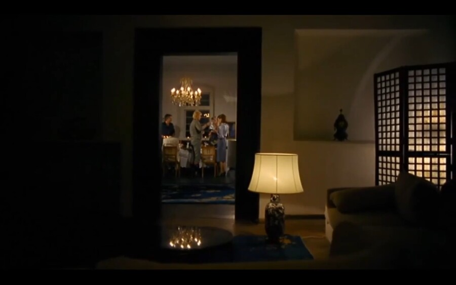 Действие фильма происходит в довольно большом поместье, заполненном разными обрамляющими конструкциями: косяки дверей, оконные рамы, картины в рамках, двери, стулья. Такая структура кадра позволяет зрителю упорядочить всю ее композицию, но в то же время, создает расфокус и иллюзию зеркального лабиринта, в котором теряется ощущение пространства.